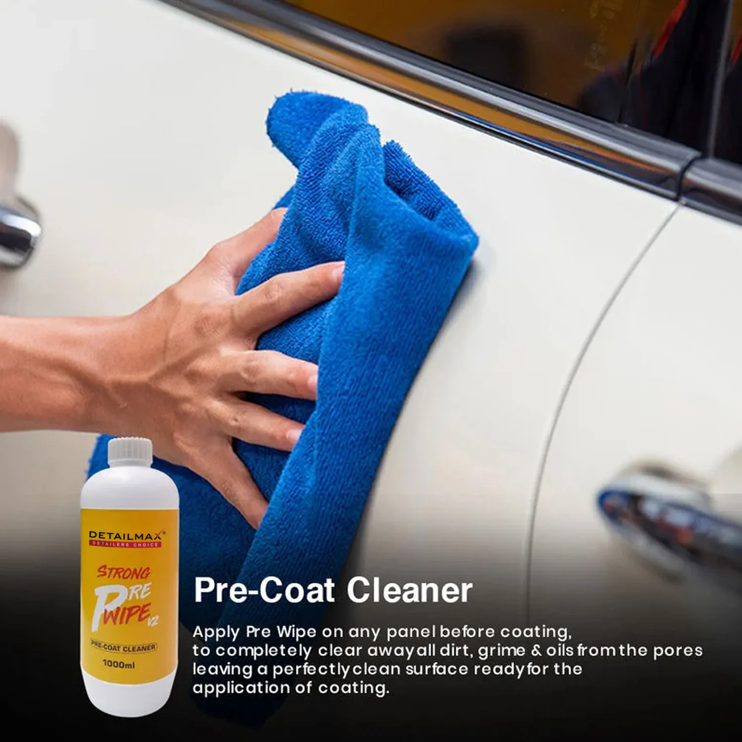 Apply Prewipe V2 Precoat Cleaner on any panel before coating, to completely clear away all dirt, grime & oils from the pores leaving a perfectly clean surface ready for the application of coating.